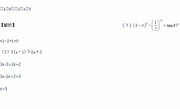 (1)计算: ;(2)解不等式:3(x-1)>2x+2.