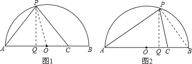 (2)当AP=AC时,如图2所示,过P作PQ⊥AB,连接BP,由AB为圆O的直径,得到∠APB=90°,