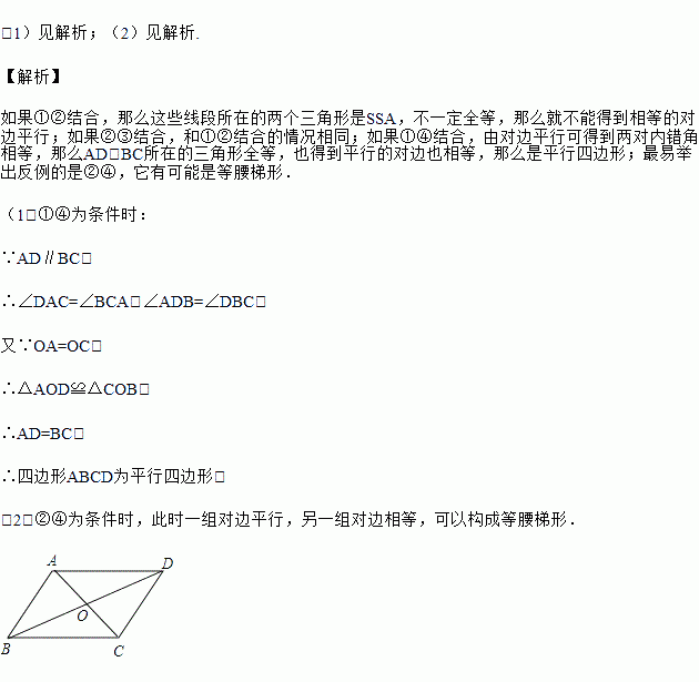 ①OA=OC,②AB=CD,③∠BAD=∠DCB,④AD∥BC.