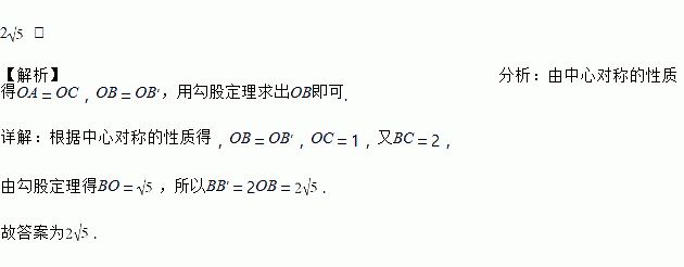 在等腰三角形ABC中,∠C=90°,BC=2cm.如果以AC的中点O为旋转中心,将这个三角形旋转180°,点B落在点B′处,那么点B′与点B的原来位置相距_____cm.