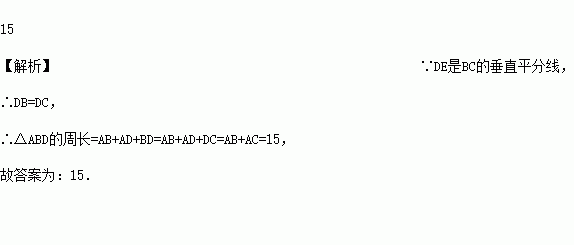 如图,已知在△ABC中,DE是BC的垂直平分线,垂足为E,交AC于点D,若AB=6,AC=9,则△ABD的周长是_____.