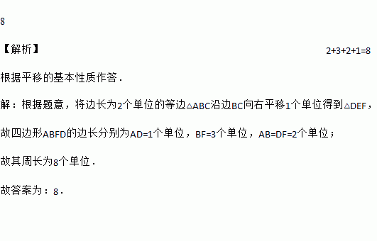 如图,将边长为2个单位的等边△ABC沿边BC向右平移1个单位得到△DEF,则四边形ABFD的周长为______个单位.