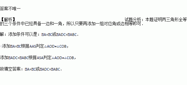 如图:AB,CD相交于点O,AD=CB,请你补充一个条件,使得△AOD≌△COB,你补充的条件是__________