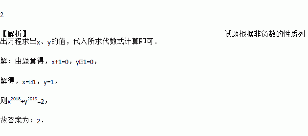 若(x+1)2+|y-1|=0,则x2018+y2019=________.