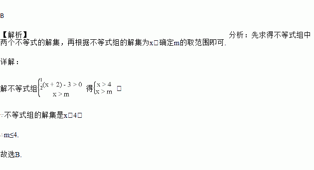 A. m<4 B. m≤4 C. m≥4 D. m>4