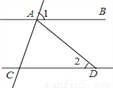 如图,AB∥CD,AD=CD,∠2=40°,则∠1的度数是( )