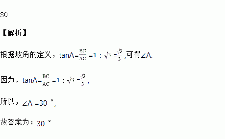 如图,河堤横断面迎水坡的坡比是,则坡角________.