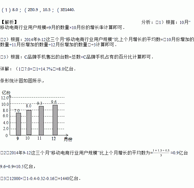 (1)2017年10月“移动电商行业用户规模”是___________亿台(结果精确到0.1亿台);并补全条形统计图;