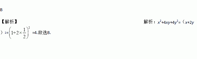 B 【解析】解析:x2+4xy+4y2=(x+2y)2==4.故选B.