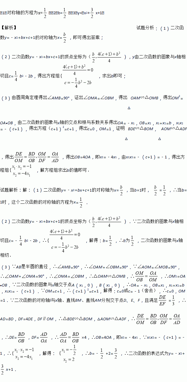 (3)若二次函数的图象与x轴交于点A(x1,0),B(x2,0),且x1<x2,b>0,与y轴的正半轴交于点M,以AB为直径的半圆恰好过点M,二次函数的对称轴l与x轴、直线BM、直线AM分别交于点D、E、F,且满足