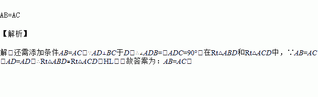 如图,中,于D,要使,若根据“”判定,还需要加条件__________