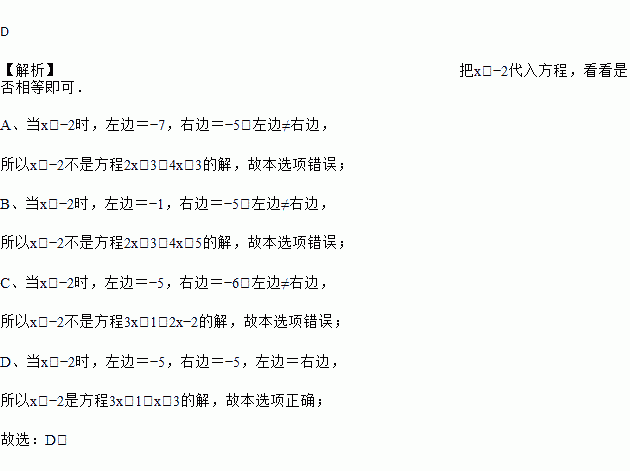在下列方程中,解是x=-2的方程是( )