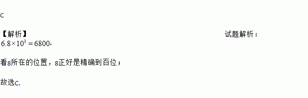 由四舍五入法得到的近似数6.8×103,下列说法正确的是( ).