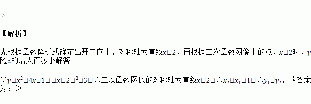已知二次函数,点在函数的图象上,则当时,,的大小关系是,________.