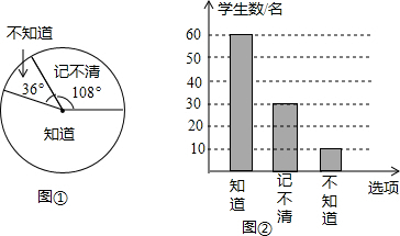 分析:(1)根据记不清的人数与圆心角的度数即可求出总人数,进而可求出知道与不知道的人数,再画图即可解答.