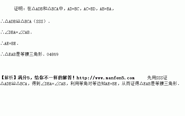 如图,AD=BC,AC=BD,求证:△EAB是等腰三角形.