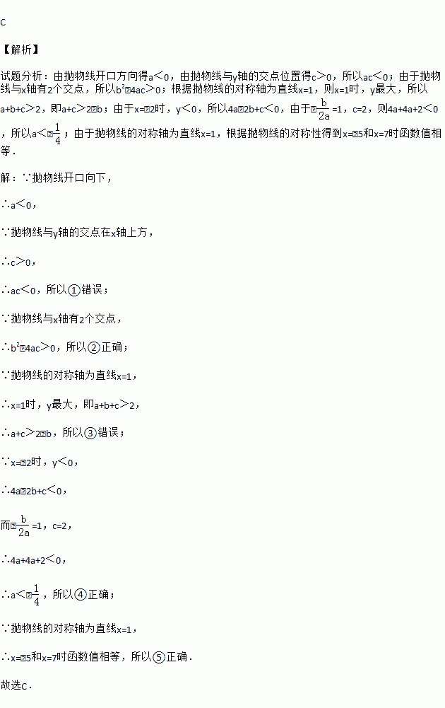 如图所示,二次函数y=ax2+bx+c(a≠0)的图象的对称轴是直线x=1,且经过点(0,2).有下列结论: