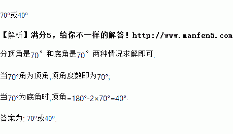 若等腰三角形的一个角为70゜,则其顶角的度数为_____ .