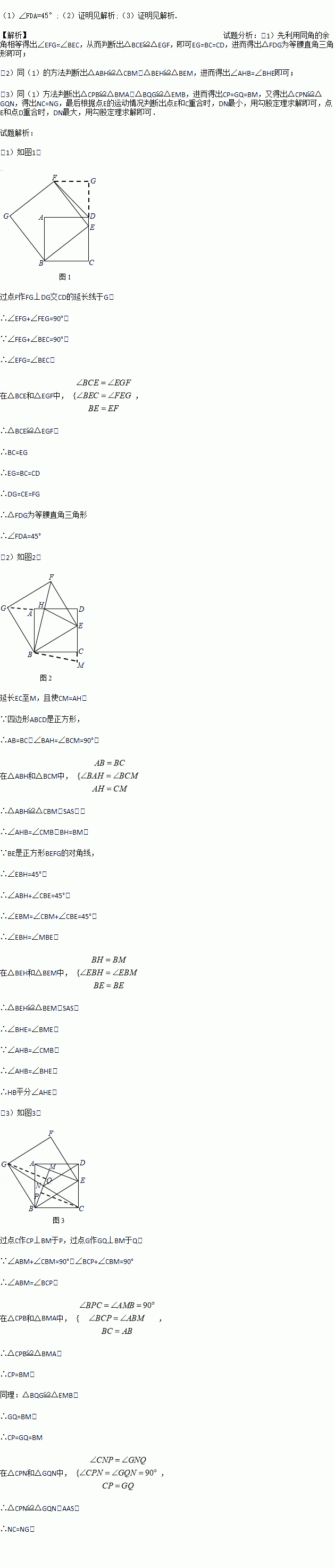 (3)如图3,连接AE、CG,作BM⊥AE于点M,BM交GC于点N,连接DN.当E在CD上运动时,求证:NC=NG