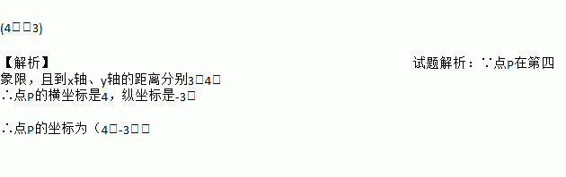 若点P在第四象限,且到x轴、y轴的距离分别为3和4,则点P的坐标为________.