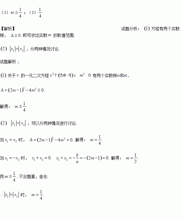 已知关于x的一元二次方程x2+(2m-1)x+m2=0有两个实数根x1和x2.