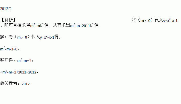已知抛物线y=x2﹣x﹣1与x轴的一个交点为(m,0),则代数式m2﹣m+2011的值是_____.