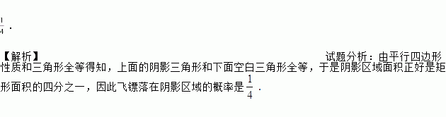 小明把如图所示的矩形纸板挂在墙上,玩飞镖游戏(每次飞镖均落在纸板上),则飞镖落在阴影区域的概率是 .