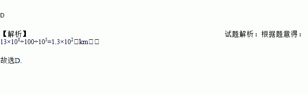 A. 1.3×105km B. 1.3×104km C. 1.3×103km D. 1.3×102km