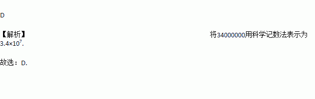 A. 0.34×108 B. 3.4×106 C. 34×106 D. 3.4×107