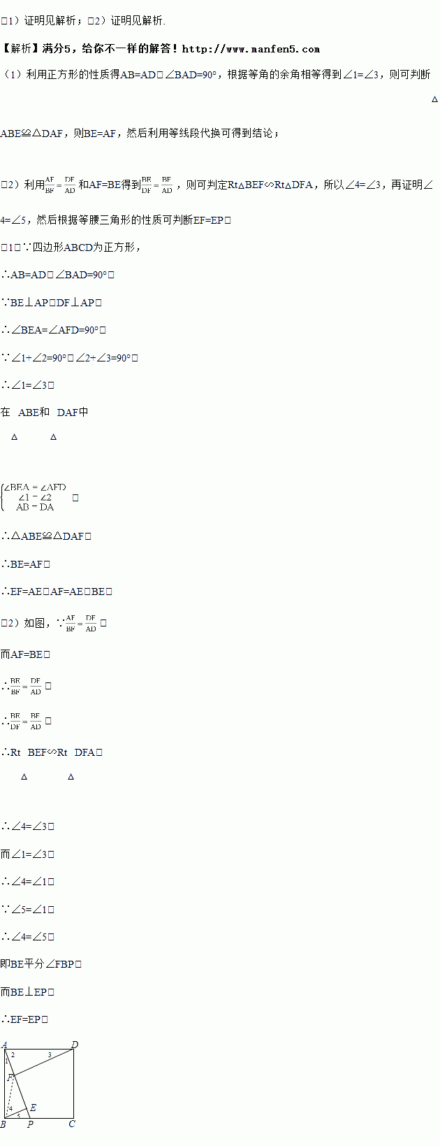 已知:如图,正方形ABCD中,P是边BC上一点,BE⊥AP,DF⊥AP,垂足分别是点E、F.