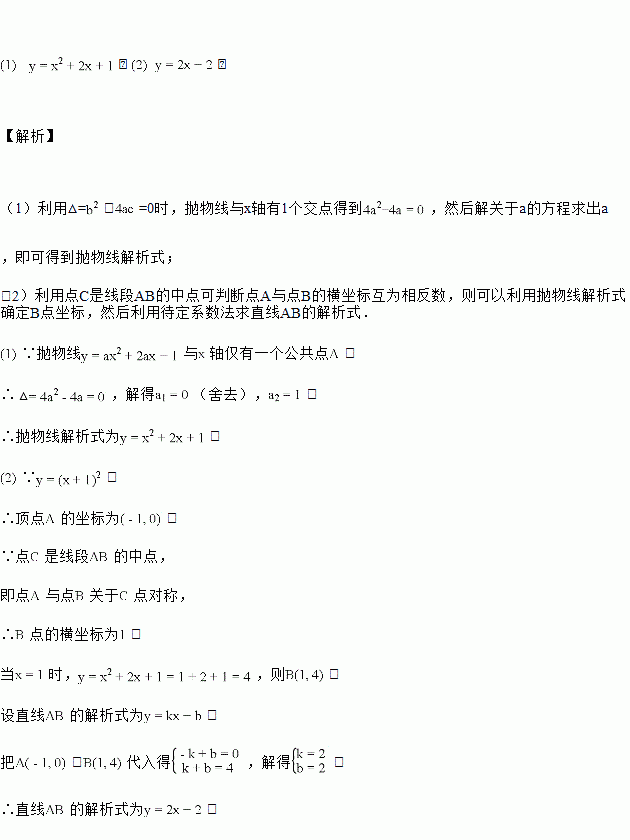如图,抛物线与轴仅有一个公共点,经过点的直线交该抛物线于点,交轴于点,且点是线段的中点.
