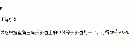 如图,在Rt△ABC中,E是斜边AB的中点,若AB=10,则CE=____.