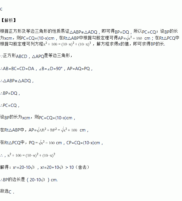已知正方形的边长是,是等边三角形,点在上,点在上,则的边长是( )