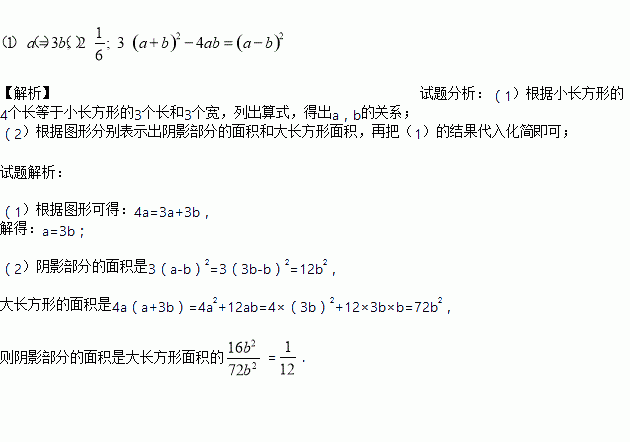 (2)请你仔细观察图中的一个阴影部分,根据它面积的不同表示方法写出含字母