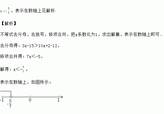 解不等式>-1,并把解集在数轴上表示出来.
