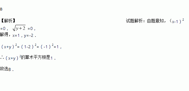 已知(x-1)2+=0,则(x+y)2的算术平方根是( )