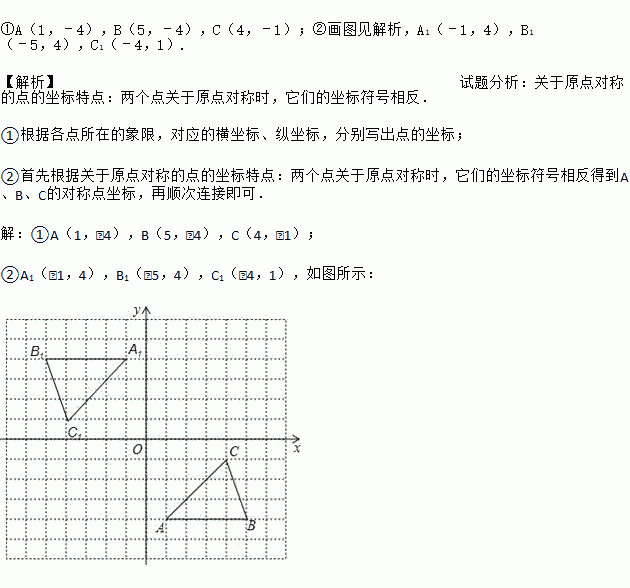 ②以原点O为对称中心,画出△ABC关于原点O对称的△A1B1C1,并写出A1、B1、C1的坐标.