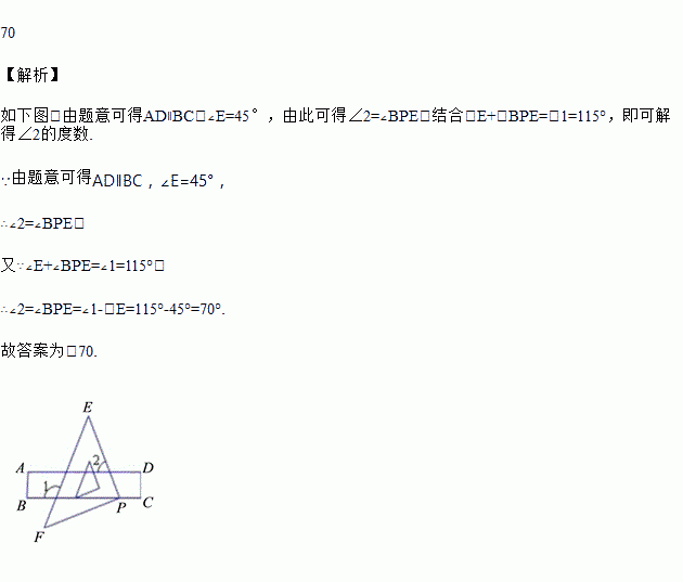 如图,把一块直角三角板的直角顶点放在直尺的一边上,如果∠1=115°,那么∠2是_____度.