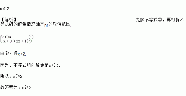 若不等式组的解集是x<2,则m的取值范围是__________.