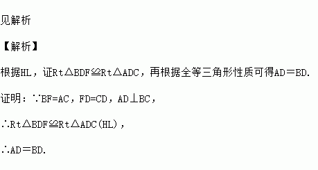 如图,AD是△ABC的高线,E为AC上一点,BE交AD于点F,且BF=AC,FD=CD.求证:AD=BD.