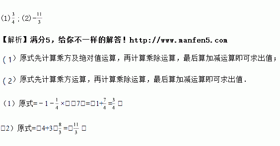 (2)﹣22+|5﹣8|+24÷(﹣3)×.