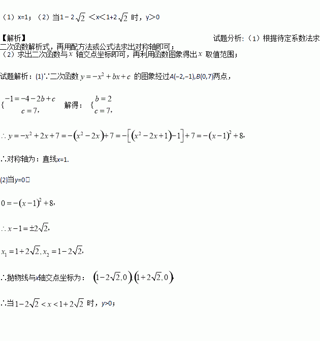 已知二次函数y=﹣x2+bx+c的图象经过A(﹣2,﹣1),B(0,7)两点.