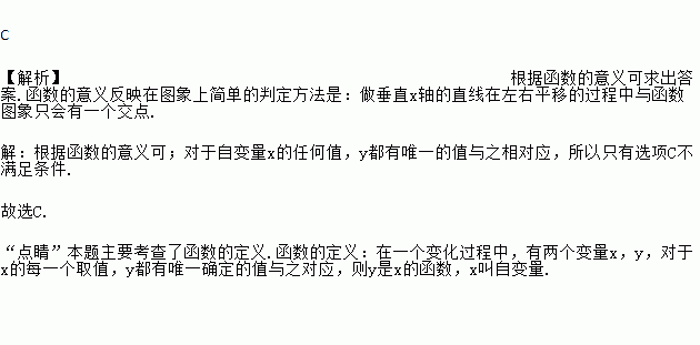 下列各曲线表示的y与x的关系中,y不是x的函数的是( )