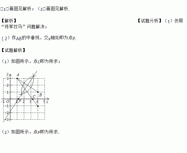 (2)用尺规在x轴上找一点P,使PA=PB(保留作图痕迹).