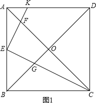 ·ÖÎö£º£¨1£©Èçͼ1£¬¸ù¾ÝÕý·½ÐεÄÐÔÖÊ¿ÉÒÔÇó³öAB=BC=CD=AD£¬¡ÏDAB=¡ÏABC=90¡ã£¬ÓÉEK¡ÍCE½»±ßADÓÚµãK¿ÉÒԵóö¡ÏKEC=90¡ã£¬Í¨¹ýÖ¤Ã÷¡÷AKE¡×¡÷BEC¿ÉÒԵóöEKÓëCEµÄÊýÁ¿¹ØÏµ£¬ÔÙͨ¹ýÖ¤Ã÷¡÷AFE¡×BGCºÍ¡÷BEG¡×¡÷DCG£¬¸ù¾ÝÏàËÆÈý½ÇÐεÄÐÔÖʾͿÉÒԵóö½áÂÛ£®