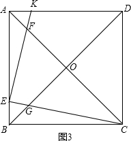 £¨3£©Èçͼ3£¬Í¨¹ýÖ¤Ã÷¡÷AKE¡×¡÷BEC¿ÉÒԵóöEKÓëCEµÄÊýÁ¿¹ØÏµ£¬ÔÙͨ¹ýÖ¤Ã÷¡÷AFE¡×BGCºÍ¡÷BEG¡×¡÷DCG£¬¸ù¾ÝÏàËÆÈý½ÇÐεÄÐÔÖʾͿÉÒԵóö½áÂÛ£®£¬
