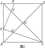 £¨2£©Èçͼ2£¬Í¨¹ýÖ¤Ã÷¡÷AKE¡×¡÷BEC¿ÉÒԵóöEKÓëCEµÄÊýÁ¿¹ØÏµ£¬ÔÙͨ¹ýÖ¤Ã÷¡÷AFE¡×BGCºÍ¡÷BEG¡×¡÷DCG£¬¸ù¾ÝÏàËÆÈý½ÇÐεÄÐÔÖʾͿÉÒԵóö½áÂÛ£®