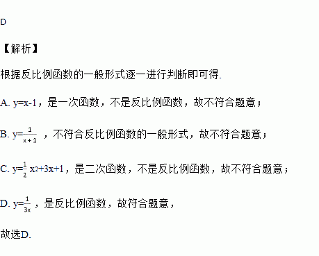下列函数中,反比例函数是( )