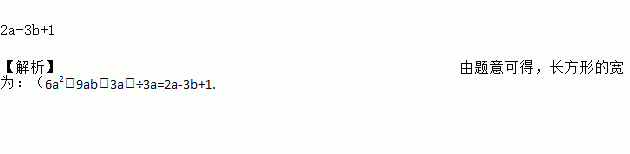 某班黑板是一个长方形,它的面积为6a2-9ab+3a,已知这个长方形的长为3a,则宽为_____.