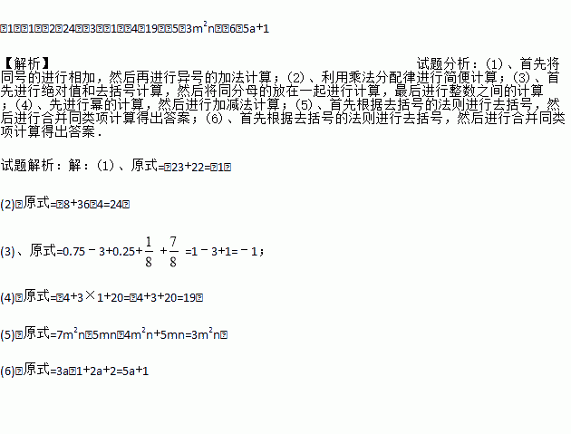 (1)﹣8﹣6+22﹣9.